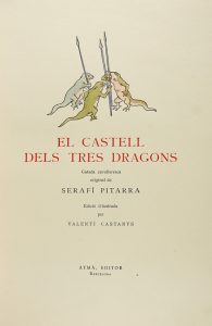 1948. LIBRO: (LITERATURA-BRUGALLA). PITARRA, SERAFI; CASTANYS, VALENTI [ilustrador]: EL CASTELL DELS TRES DRAGONS. Gatada cavalleresca. Edició il·lustrada per Valentí Castany, iluminadas a mano. Barcelona: Aymà, 1948....