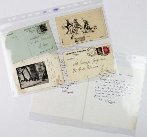 Manoscritti a inchiostro nero e blu. Le lettera su carta intestata dell’Autore. 1 cartolina con fori di raccoglitore. Dimensioni varie. SI AGGIUNGONO: Quilici Nello, 4 cartoline postali viaggiate autografe firmate. Datate 1930. I DOCUMENTO: Di argomento lavorativo. «[…] lei non fa i conti con la mia età, i miei impegni, con le ricerche da fare. Pensi che senza di lei non avrei ritrovato la mia lettera al David, perché nemmeno la Biblioteca di Torino ce l’ha completa. […] Anche per la rubrica molto attraente devo pensare a tante cose, fra l’altro il mio diario nel Borghese al quale, togliendo il commento ai fatti del giorno, che cos’altro rimane? […]» (lettera del 24 febbraio 1964). «[…] Sto compilando un articolo storico sulla prima polemica intorno alla Voce tra il 1926 e il 1929. Fu la sola volta in cui mi trovai a contraddire Soffici e Papini, su dati di fatto. Oltre le pubblicazioni ci fu un carteggio tra noi. […]» (lettera del 7 febbraio 1964). II DOCUMENTO: Quilici, giornalista e scrittore, collaborò con Prezzolini alla Voce.