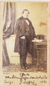 Numa Blanc & Co. Photographes. Albumina su cartone originale. Formato carte de visite (85x55 mm), supporto (103x62 mm). Con dedica autografa: «Offerto / alla Principessa Sancataldo / Parigi G. Rossini 1860». -