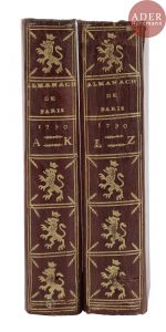 → Almanach important pour l’histoire de Paris, contenant des milliers de noms parmi les principaux habitants de la capitale au début de la révolution française. Il fait suite à l’Almanach de Paris paru de 1773 à 1789, qui avait une classification différente. Il ne parut que 2 années de cet almanach sous cette forme, toutes deux très rares selon Grand-Carteret. Celle de 1790 est le premier.