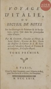 COCHIN (Charles-Nicolas). Voyage d’Italie, ou recueil de notes Sur les Ouvrages de Peinture & de Sculpture, qu’on voit dans les principales villes d’Italie. Paris : Charles Antoine Jombert père, 1769. — 3 tomes en 2 volumes in-8,...