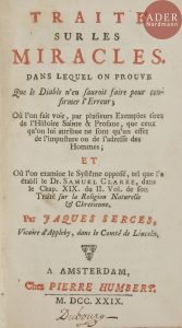 Il fut composé pour prouver « Que les Miracles sont par eux-mêmes, & indépendamment de toute autre considération, des signes certains de la Vérité » (p. 9) ; l’auteur en cela combat l’opinion que l’on avait alors qui était que l’on attribuait au diable les miracles des païens.
