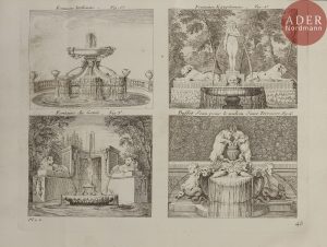 L’illustration se compose de 49 planches dépliantes gravées par Jean Mariette d’après les dessins de l’architecte et ornemaniste Alexandre Jean-Baptiste Le Blond (1679-1719) pour une part et d’après le peintre, paysagiste et collaborateur de Le Nôtre, Jean Chaufourier (1679-1757) pour d’autres.