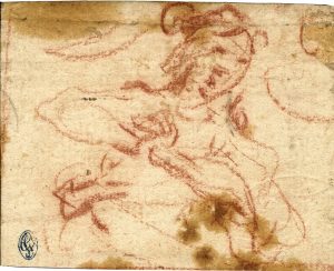 Matita rossa; carta bianca a vergelle e filigranata (visibile solo parzialmente). Foglio: mm 90x110. Supporto: mm 126x172. Il disegno reca in basso a sinistra il timbro della collezione di Giuseppe Vallardi (Lugt 1223). Opera di grande freschezza qualitativa. Il foglio è incollato al supporto in carta marroncina (sec. XX) ‘a finestra’, ossia lungo i bordi dal recto.