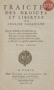 [GILLOT (Jacques)]. Traictez des droicts et libertez de l’eglise gallicane. Paris : Olivier de Varennes, 1609. — In-4, 231 x 160 : (3 ff. ), 391 pp.