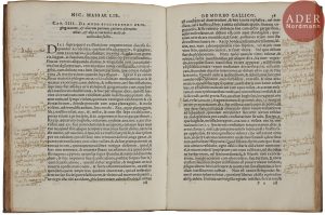 Le titre porte une jolie et grande vignette gravée sur bois. Intéressant exemplaire dont pratiquement chaque page est couverte de notes en latin de l’époque.