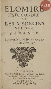 [MOLIÈRE] - LE BOULANGER DE CHALUSSAY. Elomire hypocondre, ou les médecins vengez. Comédie. Paris : Charles de Sercy, 1670. — In-12, 150 x 90 : (4 ff. ), 112 pp.