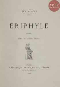 MORÉAS (Jean). Ériphyle. Poème Suivi de quatre Sylves. Paris : Bibliothèque artistique & littéraire, 1894. — In-8, 221 x 168 : 42 pp. , (3 ff. ), couverture imprimée.