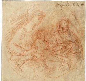 Due tipi di matita rossa, penna e inchiostro; carta bianca. Foglio: mm 200x200. Nell’iscrizione in alto a destra, manoscritta a penna (sec. XVIII): “di Andrea del Sarto”. Il foglio è stato integrato con carta affine ma non uguale nella parte centrale, più visibile dal verso. Anche la parte disegnata è stata ritoccata con matita rossa (sec. XX). Sempre lungo il margine destro è presente una vasta macchia di umidità.