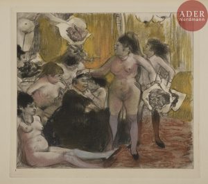 [DEGAS (Edgar)] MAUPASSANT (Guy de). La Maison Tellier. Paris : Ambroise Vollard, 1934. — In-4, 328 x 254 : (4 ff. deux premiers blancs), 64 pp. , (8 ff. dernier blanc), 19 planches, couverture illustrée.