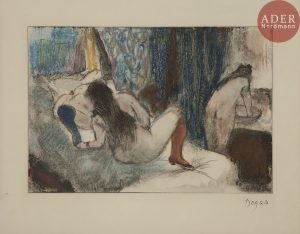 Édition tirée à 325 exemplaires numérotés sur vélin de Rives, illustrée de 22 gravures de reproduction sur cuivre hors texte, dont 3 en couleurs sur japon, exécutées par Maurice Potin d’après les compositions originales en noir et en couleurs d’Edgar Degas, ainsi que de 12 reproductions de dessins du même artiste dans le texte.