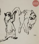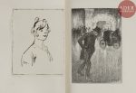 Exemplaire unique, relié par Georges Cretté, enrichi de 32 dessins originaux de Steinlen, à l’encre ou à la mine de plomb, disséminés dans l’exemplaire, représentant pour la majorité des portraits et quelques animaux notamment des chats.
