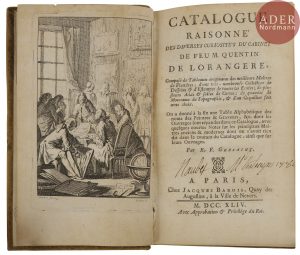 Très intéressant catalogue rédigé par le célèbre marchand de tableaux Edme-François Gersaint (1694-1750), de la collection du bibliophile et amateur d’art Quentin de Lorangère (16. -1744).