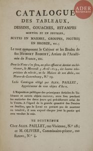 Catalogue de la vente du cabinet du peintre et dessinateur Hubert Robert (1733-1808), rédigé par le peintre et expert Alexandre-Joseph Paillet (1743-1814).