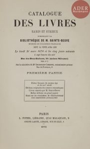 [SAINTE-BEUVE (Charles-Augustin)]. Catalogue des livres rares et curieux composant la bibliothèque de M. Sainte-Beuve dont la vente aura lieu Le lundi 21 mars 1870 et les cinq jours suivants. Première partie. - Catalogue des livres… dont la...