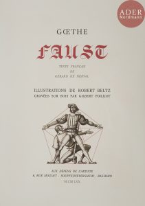 [BELTZ (Robert)] - GŒTHE (Johann Wolfgang von). Faust. Texte français de Gérard de Nerval. Souffelweyersheim : Aux dépens de l’artiste, 1970. — 2 volumes in-folio, 380 x 282 : (4 ff. 2 premiers blancs), 230 pp. , (5 ff. 2 derniers...