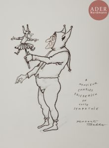 Un des 104 exemplaires numérotés sur papier vélin de Rives, celui-ci enrichi d’un envoi autographe de l’artiste adressé à Charles Friederich, accompagné d’un dessin original.