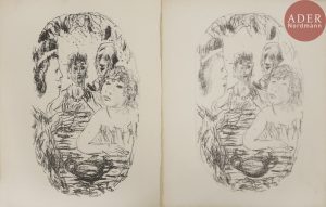Elles présentent parfois des différences entre elles, dans le tirage et dans le sujet. Il a été ajouté une épreuve d’essai des lithographies des pages 45, 65, 83, 86 et 91.