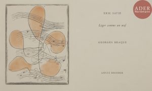 [BRAQUE (Georges)] - SATIE (Erik). Léger comme un œuf. [Paris] : Louis Broder, [1957]. — In-16, 167 x 136 : 26 pp. , (7 ff. second et 2 derniers blancs), couverture de papier japon imprimé.