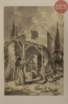 • L. A. S. de Chadel, 1 page in-4, adressée à « Mon cher Maître », datée de Paris, 14 janvier 1939, écrite sur papier japon et comprenant dans l’angle inférieur gauche un dessin original figurant Saint Jean en prison.