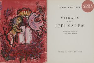 CHAGALL (Marc). Vitraux pour Jérusalem. Introduction et notes de Jean Leymarie. Monte Carlo : André Sauret, [1962]. — In-4, 326 x 245.