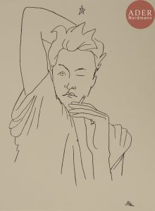 ► Édition originale très rare de ce recueil de 25 dessins de Jean COCTEAU (1889-1963) reproduits à pleine page, représentant des portraits de Jean Desbordes , véritable hommage à son amant.