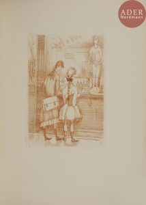 Tirage strictement limité à 305 exemplaires ; celui-ci est l’un des 280 sur papier van Gelder vélin crème, contenant deux états des eaux-fortes, l’un en noir et l’autre en sanguine.