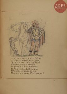 Il a été enrichi de deux dessins originaux de Charles Martin, à savoir une aquarelle inédite et le croquis original au crayon de l’illustration de la page 43, ainsi que de 8 pages d’épreuves (pp. 37 à 40 et 53 à 56) comprenant 3 croquis originaux de l’artiste dont 2 rehaussés en couleurs.