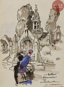 ♦ Précieux exemplaire enrichi des 2 aquarelles originales signées à pleine page de Mathurin Méheut, l’une dédicacée au docteur Ramadier.