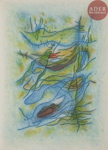 Un des 40 premiers exemplaires sur vélin à la main du Moulin Richard de Bas, complet des deux textes sous chemise de toile verte, sur Julien Gracq et Gustave Singier et enrichi d’une suite des lithographies et des bois sur vélin du Moulin Richard de Bas.