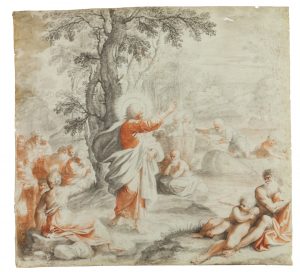 Giovanni Francesco Barbieri (detto il Guercino) (1591-1666) [cerchia di], Cristo predica alle folle. 1650-60 ca.