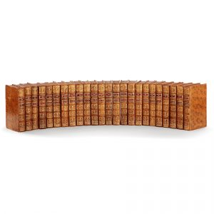 Bibliothèque de campagne, ou Amusemens de l’esprit et du cœur. imprimé à Genève, Lyon, Pierre Duplain l’aîné, 1766 ; 24 vol. in-12, veau marbré, filet à froid sur les plats, dos à nerfs orné de motifs dorés, pièces de titre et de...