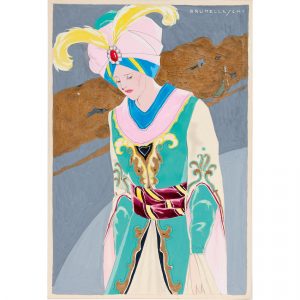 Compositions de Brunelleschi aquarellées au pochoir.Tirage limité à 500 exemplaires numérotés ; l’un des 468 sur papier vélin de Hollande (n° 166).Exemplaire enrichi d’un beau dessin original gouaché et rehaussé à l’or signé de Brunelleschi et de quelques feuillets illustrés provenant d’un autre exemplaire.