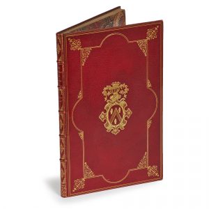 FOURNIER (Édouard). Les Lanternes, histoire de l’ancien éclairage de Paris. Paris, Dentu, Jannet, 1854 ; in-8, maroquin rouge aux armes, guirlande en encadrement sur les plats, dos à nerfs orné, couverture jaune conservée (C. Hardy).
