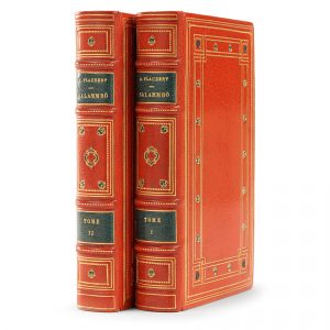 • BALZAC (Honoré de). La Vieille Fille. Paris, Kieffer, 1931 ; gr. in-8, maroquin marron, large décor à froid sur les plats, dos à nerfs orné de même, tête dorée, couvertures et dos conservés, [René Kieffer].Eaux-fortes originales d’Émilien Dufour.Exemplaire n° 387 sur papier vélin.• FLAUBERT (Gustave). Salammbô. Paris, Alphonse Lemerre, 1879 ; 2 vol. in-12, maroquin corail, encadrements de motifs dorés et fleurettes mosaïquées, dos à nerfs orné de même, tête dorée, couvertures et dos conservés, étui commun, [J. Kaufmann - F. Horoloir].FIGURES GRAVÉES SUR CUIVRE DE P. VIDAL.Un des 25 exemplaires sur papier Whatman (n° 9).• MAUPASSANT (Guy de). La Maison Tellier. Paris, Librairie des Amateurs, Ferroud. 1936 ; in-12, chagrin feu, composition de chagrins mosaïqués au centre du plat supérieur, dos à nerfs, tête dorée, couvertures et dos conservés, étui.Compositions de Carlègle aquarellées au pochoir.Exemplaire n° 207 sur papier vélin d’Arches, avec une suite en noir.Enrichi d’un dessin original signé à l’encre de Chine.• NOAILLES (M. de). Le Cœur innombrable. Paris, Calmann Levy, s. d. ; in-12, demi-maroquin bleu à coins, dos à nerfs, tête dorée, couverture conservée.On joint une lettre A. S. de Pierre d’Arcangue adressée à la comtesse.Quelques légères rousseurs.• HÉSIODE. Les Travaux et jours. Suivis de la Terre et l’Homme par Anatole France. Paris E. Pelletan. 1912 ; pet. in-4, bradel parchemin ivoire à rabats, titre manuscrit sur le dos, tête dorée, couvertures et dos conservés, étui.Bois originaux de Paul Émile Colin.Exemplaire n° 369 sur papier vélin.• GOGOL (Nicolas). Journal d’un fou. Paris, Schiffrin, les éditions de la pléiade, 1927 ; pet. in-4, demi-maroquin citron à coins, dos à nerfs, tête dorée, couverture conservée, [R. et A. Mativet], dos très légèrement assombri.Aquatintes originales de A. Alexeieff.Exemplaire n° 126 sur papier vélin BFK de Rives.