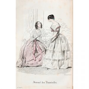 192 numéros.Édition originale.Orné d’environ 390 planches dont :- environ 58 planches aquarellées dont 6 dépliantes- environ 258 planches gravées sur métal dont 170 dépliantes- environ 73 planches lithographiées en noir- 1 planche lithographiée en couleur.Également illustré de nombreuses vignettes in-texte gravées sur bois.Série complète des 16 premières années du journal, en reliure uniforme, richement illustrée de gravures de mode, de patrons ainsi que de gravures et lithographies d’après les maîtres, etc.Rousseurs éparses, feuillets parfois brunis, quelques déchirures marginales y compris à certaines planches dépliantes, un double feuillet et une planche double débrochés, petit manque avec atteinte au texte à un feuillet, petit manque sans atteinte à la gravure à une planche.