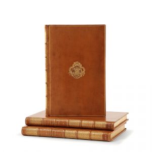des plats, monogramme doré au centre, dos à nerfs orné de motifs dorés à la grotesque, tranches dorées, encadrement intérieur d’une fine dentelle dorée, [P. Grandin].