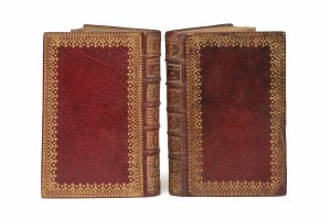 ALMANACH ROYAL, Année 1741... Paris, Veuve d Houry, 1741. ALMANACH ROYAL, Année 1742. Idib, id., 1742. 2 volumes in-8, maroquin rouge, encadrement droit, dos à 5 nerfs ornés, roulette intérieure, doublure et gardes de papier dominoté à fond...