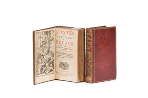 Jean BOCCACE. Contes et nouvelles... Cologne, Gaillard, 1702. 2 volumes in-12, maroquin rouge, triple filet, dos lisses joliment ornés avec médaillons mosaïqués, roulette intérieure, tranches dorées (reliure de l époque).