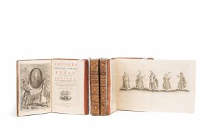 Le Chevalier Jean CHARDIN. Voyages en Perse et autres lieux de l’Orient… Amsterdam, Aux dépens de la compagnie, 1735. 4 volumes in-4, veau marbré, triple filet, dos à 5 nerfs ornés (reliure de l’époque).