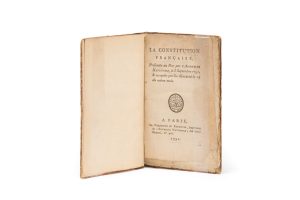La CONSTITUTION FRANCAISE, présentée au Roi par l’Assemblée Nationale, le 3 septembre 1791, et acceptée par Sa Majesté le 14 du même mois. Paris, Baudouin, 1791. In-8, demi-veau marron, dos lisse (reliure de la fin du XIXe siècle).