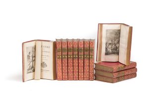 Pierre CORNEILLE. Théâtre… S.l. (Genève), 1764. 12 volumes in-8, basane fuchsia, roulette florale et filets sur les plats, dos à 5 nerfs ornés, tranches dorées (reliure de l’époque).