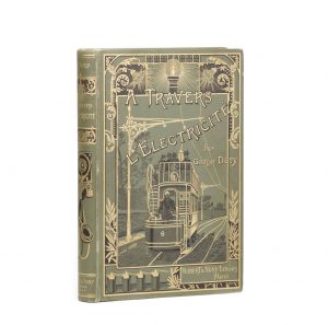 Georges DARY. A travers l’électricité. Qu’est-ce que l’électricité ?... Paris, Nony, 1903. In-4, percaline verte illustrée d’un motif noir et doré révolutionnaire, le Tramway, tranches dorées (reliure de l’éditeur d’après...