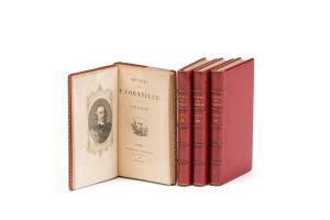 Pierre CORNEILLE. Œuvres. Paris, Dufour et compagnie, 1827. 4 volumes in-48, maroquin janséniste rouge, dos à 5 nerfs, dentelle intérieure (David).