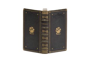 VIRGILE. Publius Virgilius Maro. Londres, Pickering, 1821. In-64, maroquin bleu à long grain, roulette à froid et filets dorés en encadrement, écoinçons à froid et fleuron spécial au centre, dos à 4 nerfs joliment orné, roulette...