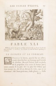 ESOPE. Fables… avec un discours préliminaire, et les Sens Moraux en distiques. Paris, Thiboust, 1743. In-4, veau marbré, dos à 5 nerfs orné (reliure de l’époque).
