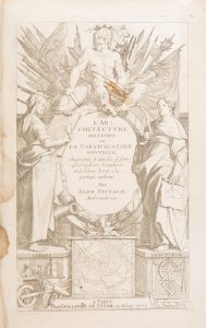 Adam FRITACH. L’Architecture militaire, ou La Fortification nouvelle… Paris, Luyne, 1668. 3 parties en un volume in-4, veau brun, armoiries, dos à 6 nerfs orné (reliure de l’époque restaurée).