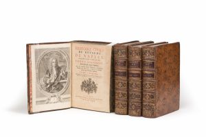 Pierre GIANNONE. Histoire civile du royaume de Naples… La Haye, Gosse et Beauregard, 1742. 4 volumes in-4, veau marbré porphyre, triple filet, dos à 5 nerfs ornés (reliure de l’époque).