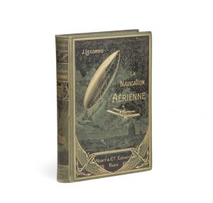 Joseph LECORNU. La Navigation aérienne. Histoire documentaire et anecdotique. Paris, Nony, 1903. In-4, percaline verte, plats et dos illustrés de fers spéciaux noir et or, tranches dorées (reliure de l’éditeur).