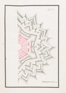 Il s’agit très probablement d’un cours d’art militaire sur les fortifications de Vauban qui se complète par une section sur la Construction des Profils faitte par M. Belidor.